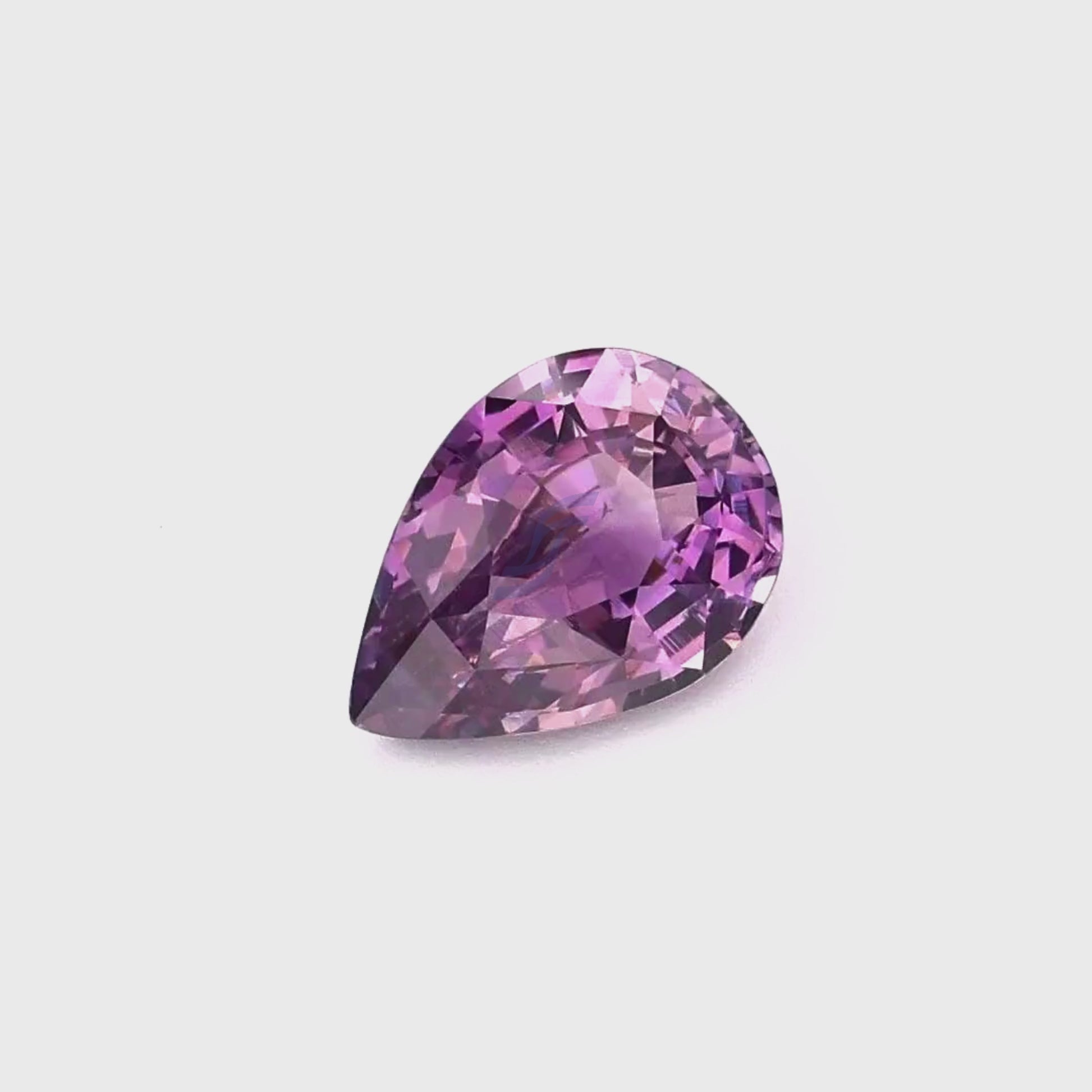 Introducing a stunning 1.59ct pear cut violet sapphire, a true masterpiece of nature's beauty. This precious gemstone is crafted with the utmost care and precision to showcase its exquisite color and clarity. The deep and rich violet hue of this sapphire is both alluring and mesmerizing, making it the perfect choice for those who seek a unique and elegant piece of jewelry.